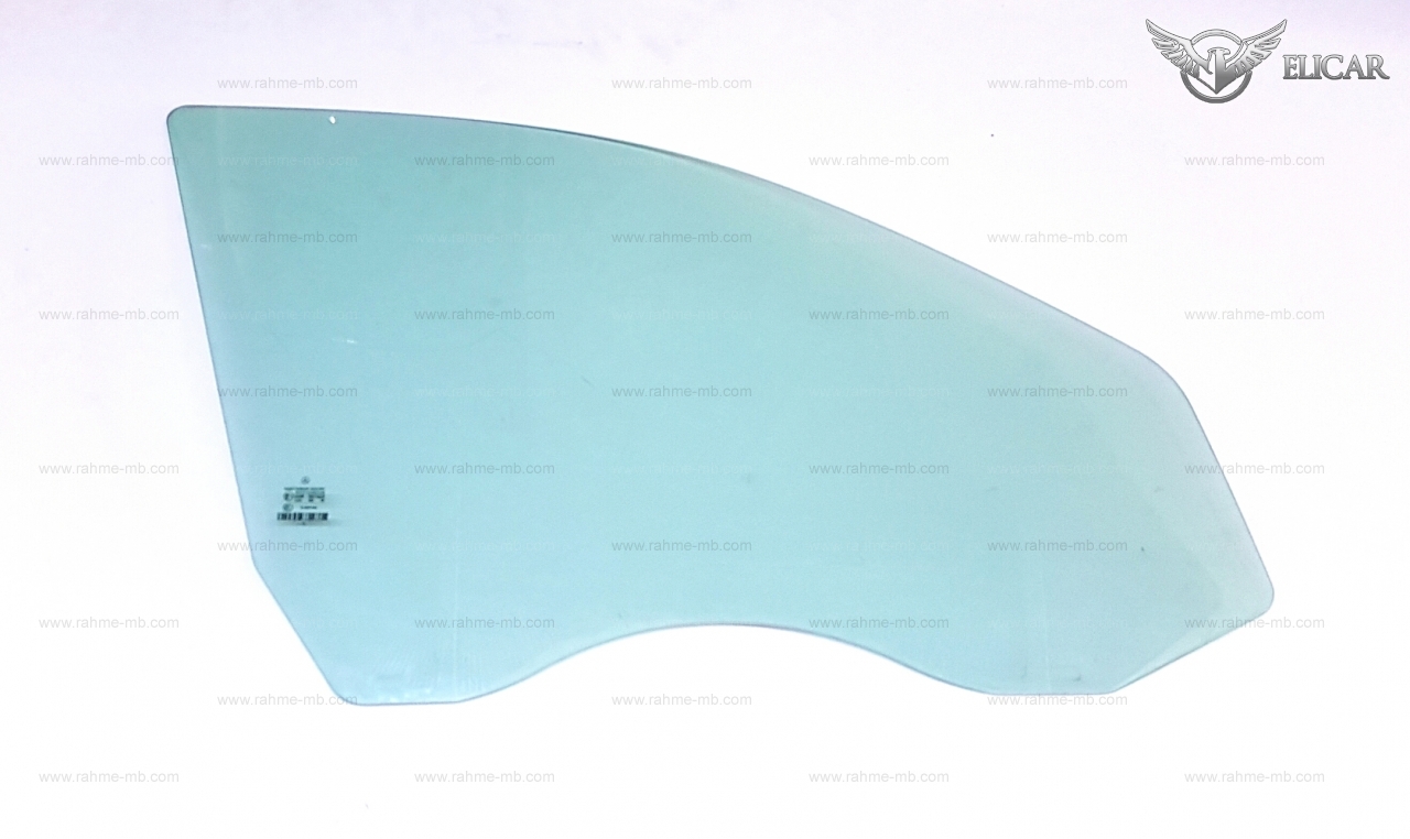 Glass pane for front right door, heat absorbing glass blue.